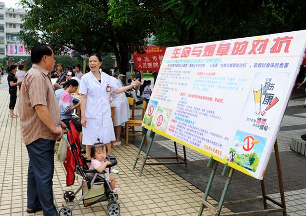 2012年5月31日是第25个世界无烟日,今年世界无烟日的主题是“烟草业干扰控烟”,口号是“生命与烟草的对抗”。为提高公众对吸烟危害健康的认识,营造科学健康的生活风尚,我院组织医疗专家共20余人在街心花园广场开展了以“烟草业干扰控烟”为主题的宣传教育、义务咨询和免费义诊活动。
