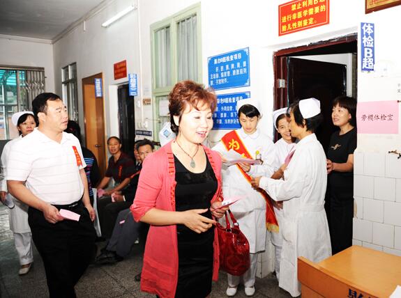 9月23日上午,市总工会组织市直机关及事业单位39名劳模到我院进行体检,体检内容包括B超、心电图、胸部透视等十多个项目。为了使劳模们到我院能享受到热情、周到、便捷的服务,医院开辟了体检绿色通道:安排专门导诊人员,安排单独体检诊室等,使体检工作井然有序,得到了劳模们的一致好评。