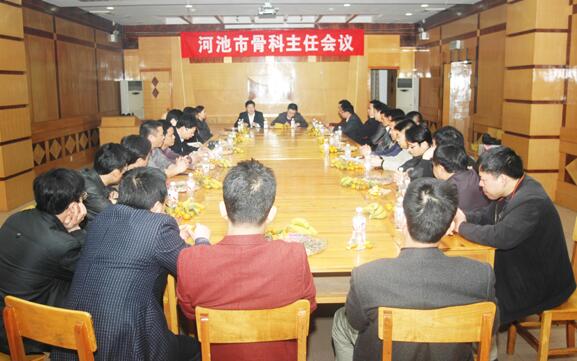 4月1日,由我院骨科主办的2011年河池市骨科主任会议在医院三楼学术报告厅隆重召开。来自全市各县、市、区医院的骨科主任30多人参加了会议,会议由我院副院长、广西骨科分会委员韦寿繁主持。