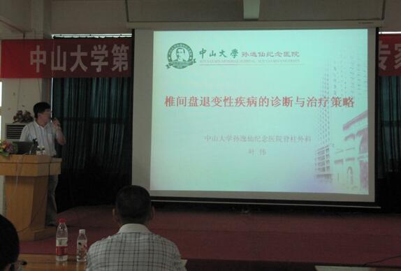 6月22日下午,我院在三大教室举办《糖尿病治疗的新观点》、《腰椎间盘退变性疾病的治疗策略》专题学术讲座。此次讲座由我院科教科科长张传东主持,对口支援我院的中山大学附属二医院肾病内科专家张益民博士和骨科专家叶伟博士主讲,医院临床、医技人员共200多人参加。