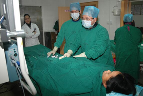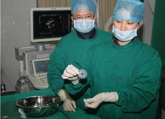 环江东兴莫女士,今年28岁,近1个月以来,在上楼、爬坡时反复出现胸闷、气紧等现象,休息后仅略有好转,由于病情反复,先后经多家医院治疗但病情没有好转。于11月30日前来我院就诊,经过我院心血管内科专家的细心检查,心脏听诊有明显杂音。后经过心脏彩色B超检查,提示为先天性心脏病、动脉导管未闭(管型,左向右分流),被诊断为先天性心脏病,在主动脉及肺动脉之间存在一条异常通道,若不及时治疗会出现心脏扩大、心衰、肺动脉高压等症状,一旦出现右向左分流即失去手术机会,患者会很快出现心衰加重死亡。在病情紧急的情况下,我院心血管内科医护人员对患者病情进行讨论,决定实施心脏病封堵术。12月8日,患者被推进心导管室,医护人员在大型C臂机的引导下,仅在患者大腿部位处穿刺一个针眼,通过导管、导丝进入体内达心脏病变部位主动脉及肺动脉之间异常通道进行封堵,术中采用心脏彩色B超机直接监测封堵情况及封堵后有无渗漏现象,易于控制封堵器的释放和回收,经过不到1小时的紧张手术,吴某主动脉及肺动脉之间异常道得到根治,手术获得成功。