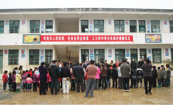1月18日,我院及社会各界爱心人士一行12人在韦寿繁副院长的带领下,到凤山县中亭乡先锋村捐款捐物5.7万元,为先锋村委及先锋小学解决实际困难。