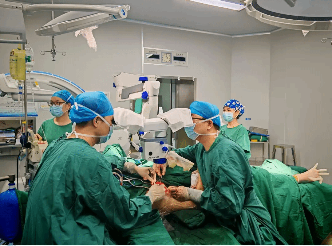 手术台上,在麻醉科的生命支持护航下,由创伤手外科周业修副主任医师、刘强主治医生、王瑞学主治医生和蓝贵冠住院医师组成的手术团队实施手术。医师们像修复珍贵瓷器般,在显微镜下一毫米一毫米地清理血栓,又像拼图高手般将粉碎的骨头重新固定。整整奋战了4个小时的高难度复合手术和启动术后全天特级护理,终于让老人家的右上肢重新有了血色,疼痛麻木得到显著缓解,成功脱离生命危险,目前康复进展良好。