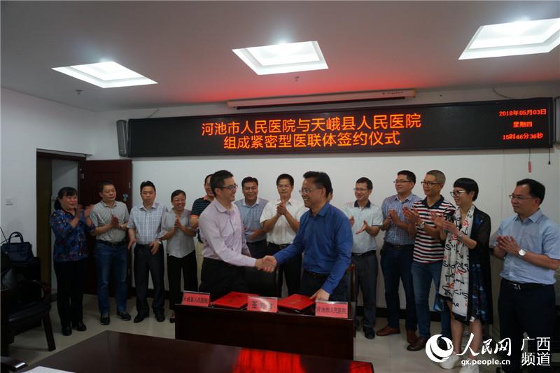 签约仪式上,梁涛表示,组建紧密型医疗联合体是深化医改、构建分级诊疗就医新格局的重要举措。医联体成立后,河池市人民医院将派出专家常驻医联体医院,全面参与当地医院的日常管理,指导医院开展业务、培养人才,通过医疗人员双向交流,推动优质医疗资源下沉,逐步达到人才互动、资源共享、信息互通的工作目标,全面提升两家医院的综合业务能力和医疗技术水平。同时,双方还将重点推动远程医疗、检验检查结果互认等方面的合作,进一步方便群众就医,减轻就医负担。