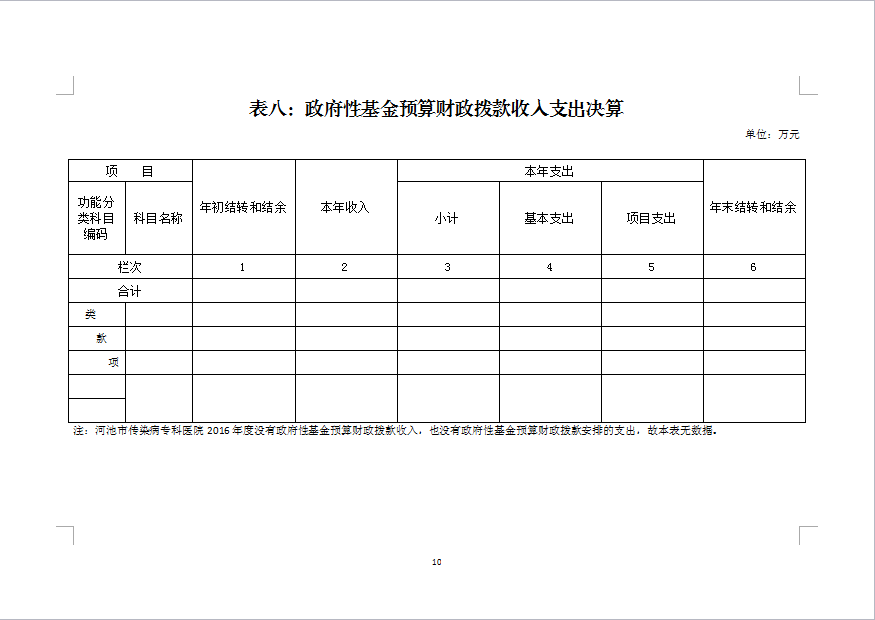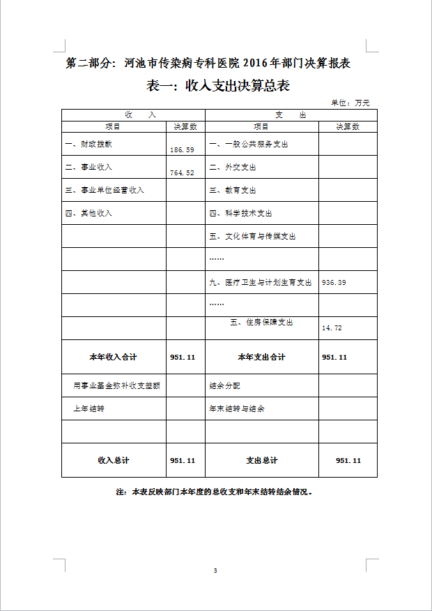 第三部分:河池市传染病专科医院2016年度部门决算情况说明