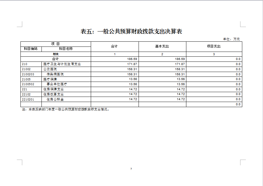 河池市传染病专科医院2016 年度一般公共预算支186.59万元,其中:基本支出186.59万元,项目支出0万元。基本支出包括人员经费支出186.48万元和日常经费支出0.11万元。