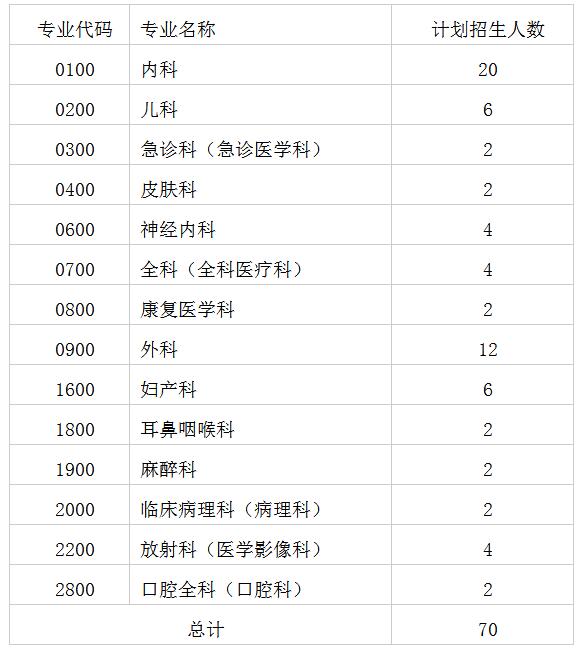 招生人数总共70人,招收专业共14个。具体如下: