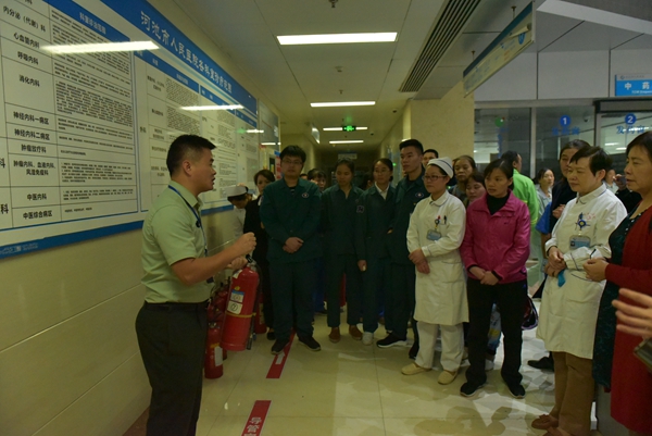 活动现场,消防培训公司胡教官、张教官对医院后勤人员进行消防理论培训。培训中胡教官给员工列举最近几年较严重的消防火灾案例,员工认真听讲,积极互动发言。随后,在门诊大厅举行消防实战演练。各分组员工按演练方案进行演练,医院机关第二党支部和门诊党支部党员扮演被困人员,各小组能按演练流程进行演练,整个演练过程基本达到党建引领、聚焦后勤保障工作质量预期目的。