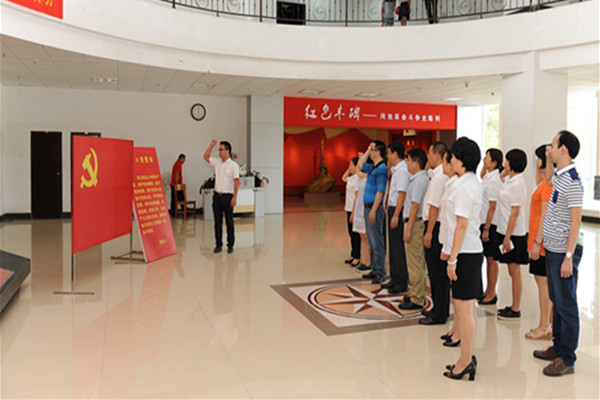 为了进一步加强我院基层党组织建设,提高广大党员的党性修养、增强党性观念和宗旨意识,深入推进“两学一做”学习教育,10月28日下午,我院机关第一党支部20名党员在党委书记韦义甜和纪委书记韦克波的带领下,参观了河池市革命纪念馆,实实在在的上了一堂生动的“两学一做”专题党课。