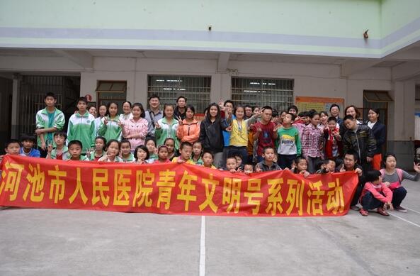 为纪念广西“青年文明号20周年”,发扬“爱国、文明、民主、进步”的五四精神,近日,我院急诊科、泌尿外科青年文明号的志愿者们在院团委的组织下,来到了金城江区特殊教育学校,开展“红五月”系列活动。