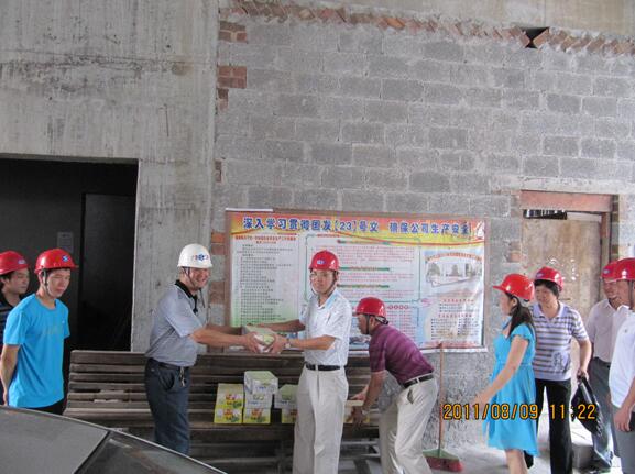 连日来,骄阳似火炙烤着大地,热浪袭人,但我院门诊综合大楼的建设施工依然如火如荼。工地上工人的辛劳牵动着机关二支部全体党员的心,8月9日中午,支部党员们带着对工人的深切关爱之情,深入到在大楼工程建设工地慰问建筑工人,给他们送去了防暑降温的慰问品,向他们致以亲切的问候和衷心的感谢,让他们在高温中感受到丝丝清凉。工人们在品尝还依然冒出“冷气”的饮料的同时,体会到了医院党员干部对他们的关心,尽管夏日炎炎,但整个作业现场却沉浸在一片清凉之中。党员们的深情关怀,极大地鼓舞了工人们的士气,决心克服一切困难,发扬不怕苦、不怕累的奋战精神,合理调配作业时间,以最佳的精神状态投入施工生产,优质高效完成建设任务,不辜负大家的重托和期望。