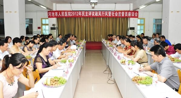 医德医风社会监督员卢雅泉、言经武、刘碧莲、康美荣、覃克玉等同志分别针对医院具体工作提出自己的意见,纷纷表示我院作为河池市医疗行业的龙头,应当尽快启用门诊综合病房大楼,使医院优质医疗资源得到更充分利用,为百姓服务,同时祝愿医院能越办越好。随后,部分患者代表也就在医院的就医体验做了发言。
