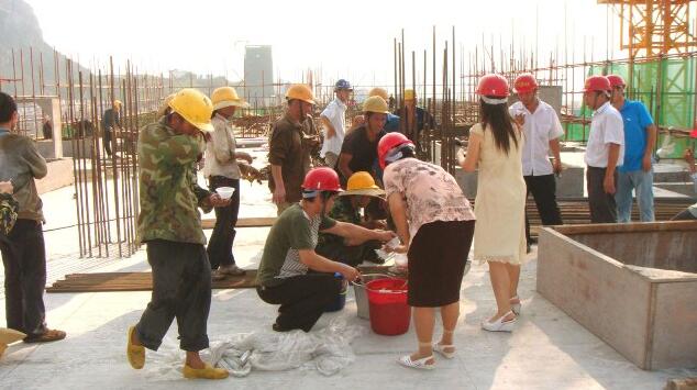 8月上旬,河池持续高温天气,医院门诊综合大楼的建设依然热火朝天,酷暑牵动着机关二支部党员的心。连续多天的高温,工地上的地表温度非常酷热,令人喘不过气来,机关二支部党员们自发地制作了清凉饮料100多斤,抬到正在建设的门诊综合大楼九楼慰问工人。望着党员们湿透的衣服和还依然冒出“冷气”的饮料,工人们发自内心地呼喊:“感谢共产党”。