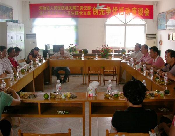 9月4日,河池市人民医院机关二支部在院党委书记陆艳姣、院长郑军、副院长梁涛的带领下,组织该支部全体党员到环江县洛阳乡卫生院联系点进行创先争优调研活动和指导该院开展各项业务技术指导工作。