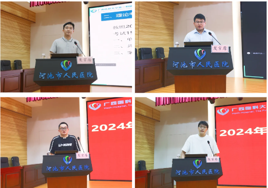 外科专业基地秘书韦合雷强调了通过结业考核的重要性,对考试范围和题型进行了详细说明。2020级陈良广、韦世权两位优秀住培医师结合自身住培经历,为今年结业考核的住培医师分享了学习技巧、考试注意事项等通过住培结业考核的经验。2021级黄换代表今年结业考核的住培医师向参会的领导和老师表示衷心感谢,并表示未来将坚守医者初心,抓紧时间学习,力争通过考核,为住培生涯画上圆满的句号。