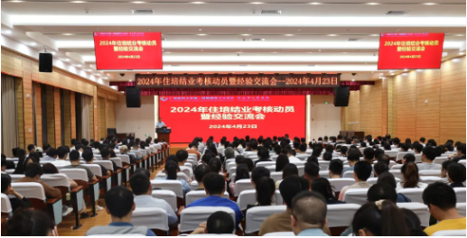 2024年4月23日,河池市人民医院在教学综合楼5楼学术报告厅举行2024年住培结业考核动员暨经验交流会。医院副院长韦仁杰、培训专业基地和各亚专业科室管理人员、住培指导医师、2020级优秀住培医师代表及2024年结业的全体住培医师等400余人参加会议,会议由科教科科长黄客增主持。