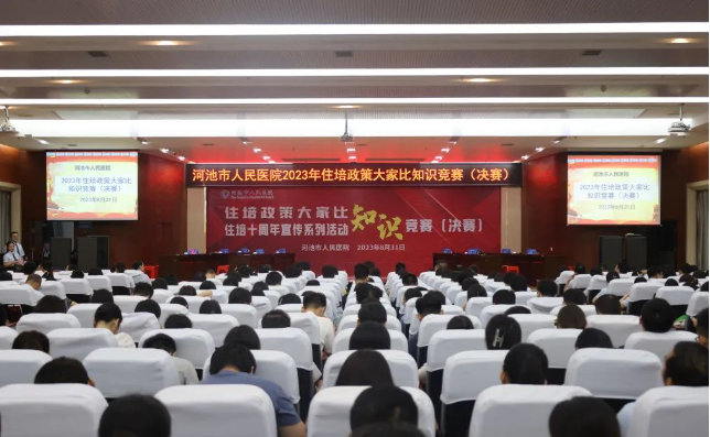 8月31日晚,河池市人民医院在门诊综合楼23楼会议室举办“住培政策大家比”知识竞赛决赛。医院领导班子成员、住培工作相关职能部门负责人、专业基地及轮转科室管理人员以及住培指导医师、住培学员参会。