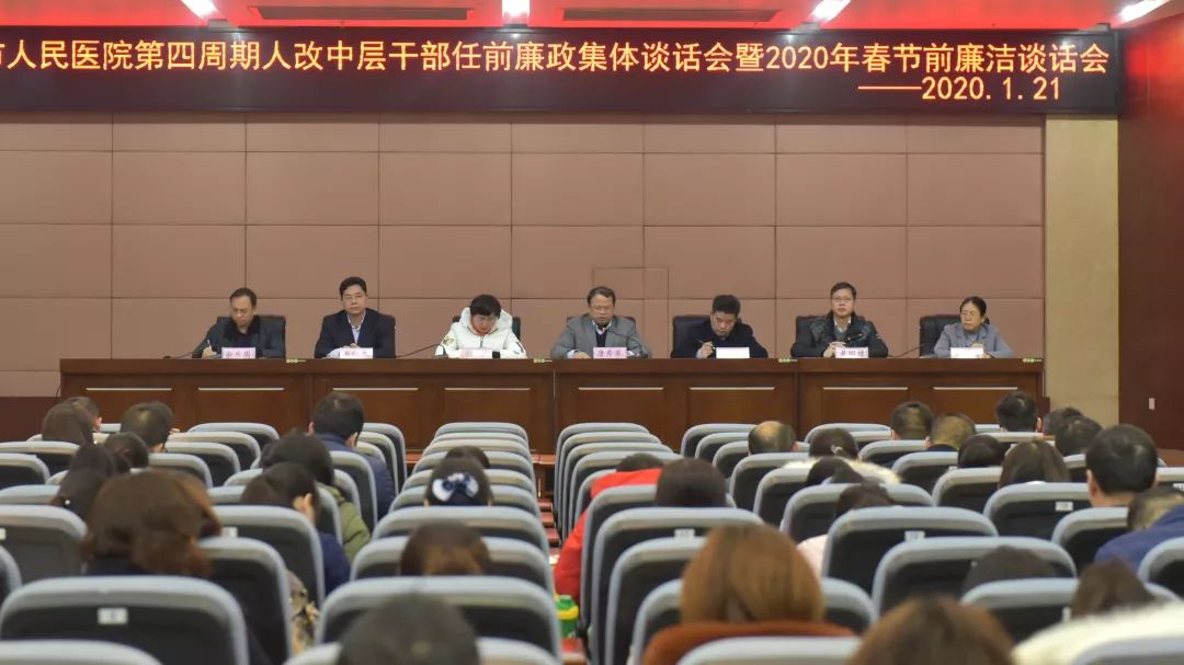 为贯彻落实全面从严治党主体责任,持之以恒落实中央八项规定精神,营造风清气正的节日氛围,1月21日,院党委组织院领导班子成员、医院第四周期人事制度改革拟任的中层干部在门诊综合楼23楼多功能厅召开第四周期人改中层干部任前廉政集体谈话会暨2020年春节前廉洁谈话会。